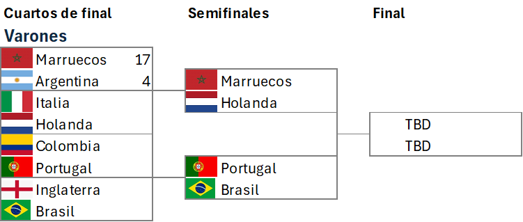 Por otro lado el desempeño de nuestros equipos en cuartos de final fue el siguiente: